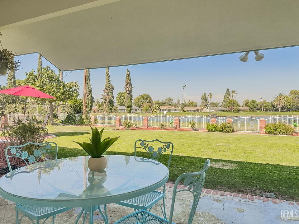Charming Kern City Vacation Style Lake Home on the 7th Hole! You've Worked Hard & Deserve This Priceless View & Tranquility of Being on the Water. Sip Your Morning Coffee w/Your Lovely Watching Wildlife Soar Through The Sky While The Sun Rises! Featuring: Spacious 2 Bedrooms, 2 Living Areas, 2 Baths, Endless Pos. w/Huge Attached Storage Room, Newer Energy Efficient Windows, Ceiling Fans Throughout, Built-In China Cabinets & Entertainment Center w/ Storage Cabinets & Drawers, Cedar Lined Closet, New Jetted Walk -In Tub, Newer French Slider, Huge Laundry Room w/ Utility Sink & Cabinetry, Covered Patio, Storage Room w/ Shelves, Finished 2 Car Garage! Producing Lemon & Peach Trees! Wonderful View of Lake w/ Stylish Wrap Around Wrought Iron Fence w/ Brick Columns. Premium Over Sized Lot! Excellent Location! Close to Shopping! No Neighbors on East or North Side! Walking Distance to Library, Pool, Town Hall & The Phoenix Sundale Country Club, Better Hurry! This Bit of Heaven Won't Last!!