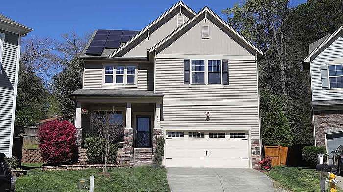 Location is just minutes to Raleigh, NC State, Cary, and RDU. Transitional floor plan with outdoor living space. Open kitchen, breakfast and family room is great for entertaining & family time. Center island, lots of cabinetry and pantry provide plenty of storage in kitchen. 4 bedrooms, 2 full baths, loft & utility on 2nd floor. 5th bedroom or bonus with full bath on 3rd floor. Retaining Wall opened up the backyard for spacious raised patio & gardening options. 2 car garage. Solar Panels=low energy costs! This home is located in a very welcoming Neighborhood in a beautiful cul de sac. Great schools- all magnet schools- Farmington (Elementary), Martin (middle) and Athens Drive (High school), EV charger in the garage to charge EV,Recently painted kitchen cabinets, Newly installed HVAC, new water heater tank, wifi enable new garage door opener, google nest doorbell and nest thermostat in all three floors, underground sprinkle irrigation for lawn
