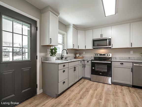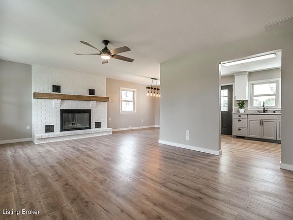 Beautifully updated home with large garage, nestled along a small creek on a 1.30-acre lot in a quiet, country setting near I-65 in Bullitt County. As soon as you pull into the drive you will be captivated by the beautiful landscaping and freshly painted exterior. The large covered front porch welcomes you to sit and enjoy the peaceful country living and sounds of the small creek located on the property.The updated interior features a neutral palette, beautiful waterproof flooring, and a custom wood mantle on the painted brick fireplace. Fully updated kitchen with two-toned cabinets and sleek granite countertops, brand new Whirlpool stainless-steel appliances, finished off with matte black fixtures. Loads of natural lighting throughout the house to enjoy!