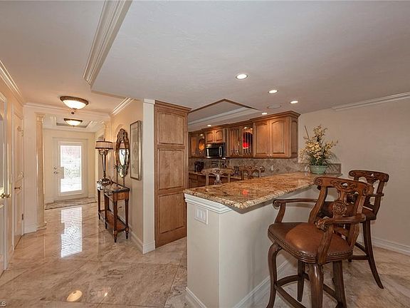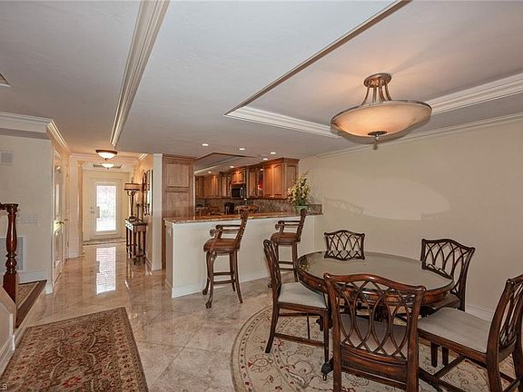 LOCATION, LOCATION- This unique Naples Bay Club Townhome is perfectly located on "Naples Island". Enjoy the spectacular views of prestigious Naples Bay with pelicans, dolphins & manatees and watch boats, yachts, excursion tours going by. Enjoy magnificent sunsets from your western exposure screened lanai or open air patio. This spacious totally renovated townhome with marbleized columns, honey glazed maple cabinets, glass leaded doors, accent lighting, granite countertops, tumble stone backsplash, marble floors, Wolf, Bosch & Subzero appliances, high end lighting and fans, floor to ceiling glass with magnificent nautical bay views. Kidney shaped thermal heated 8' deep pool located right on Naples Bay. Private 32' floating boat dock at your front door. This one of a kind Olde Naples residence makes an automobile optional. Walk to famed Olde Naples with its world-class shopping and countless fine restaurants, historic 5th Avenue and famous 3rd Street shops, beautiful white sandy pristine Gulf beaches, Historic Naples Fishing Pier, Tin City, outdoor concerts in nearby Cambier Park, the Von Liebig Art Center, Sugden Performing Arts Theatre, Art Exhibits, boat & jet ski rentals, fishing charters, just to name a few.