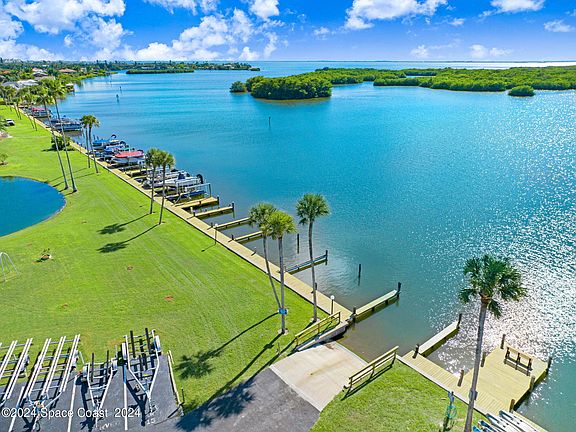 SELLER MOTIVATED MAKE AN OFFER! Cocoa Beach boat lovers—this condo amenities include a BOAT SLIP on a 725-foot dock along the navigable Banana River! Cruise through the Thousand Islands or launch a kayak or paddleboard for endless watersports . Imagine this 2-story, townhome-style end unit designed to your own taste and start enjoying the Florida lifestyle you've always dreamed of—this unit can truly become your dream home! With 1,627 SQ FT of living space, it features a dramatic staircase, open flex room (3rd bedroom/office), spacious owner's suite, and large 2nd bedroom overlooking the river. Surrounded by lush tropical landscaping, ponds & fountains, the community offers a heated pool, clubhouse, and year-round resort feel. From your balcony, take in spectacular sunsets and abundant Florida wildlife. Stroll the nearby dog-friendly beach at sunrise, surf the waves, or enjoy local festivals Downtown. With a 3-month minimum rental, it's also perfect for vacationers or seasonal living