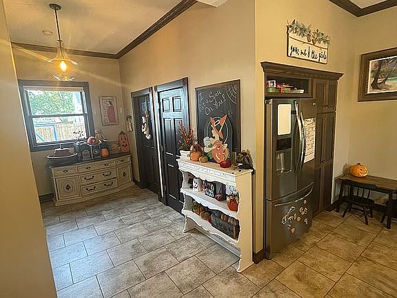 Tile fireplaceOriginal characterFrench door refrigeratorMaster suiteCustom kitchen cabinetsMarble showerElectric stove