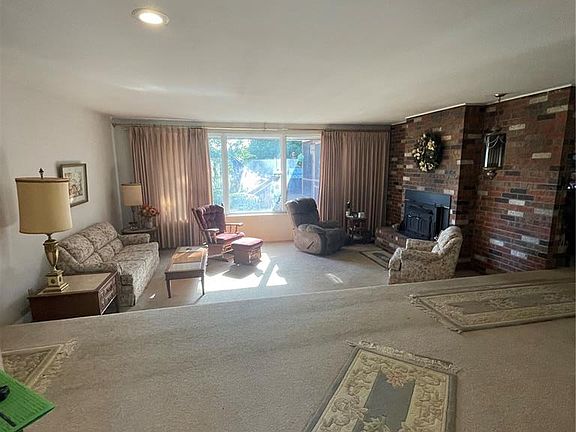 This 3-bedroom, 2-bathroom brick residence features a one-car garage and expansive layout, although in need of some updating. Upon entering, a sunken living room boasts floor-to-ceiling windows and a wood-burning fireplace. Adjacent to the living room is the dining room, which conveniently leads to the kitchen. The den, accessible from the kitchen, flows into a screened porch and deck, ideal for outdoor entertaining. The den also connects to the laundry room and garage. A hallway to the left of the front door provides access to the bedrooms. The primary bedroom and bathroom are situated to the right, with the bedroom featuring glass sliding doors that lead to the backyard. Two additional bedrooms with spacious closets are also located along the hallway, which terminates at a bathroom with a sunken bathtub.