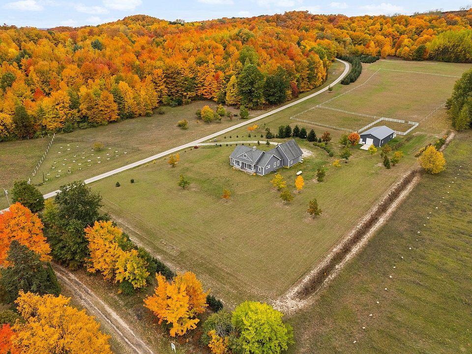 There is something about Leelanau living… the County offers a combination of picturesque countryside views of orchards & farms, along with expansive panoramic views of Caribbean hued waters. Peace & serenity are abundant yet opportunity thrives. Suttons Bay is a tight knit community just north of Traverse City… it’s small enough to get to know your neighbors by name, yet a place that provides a lifestyle that meets the needs of many. Just minutes from downtown, 800 S. Herman Rd. is a special place to call home. The canvas of 11.34 acres, is privately situated and fully functional for a hobby farm complete with a 32x56 pole building stationed with 2+ horse stalls, electric, running water, and double dutch doors leading to the fully fenced in arena for horses, chickens or other livestock (see township restrictions). This property is a true homestead… fit for those who desire to live off their land, those who desire a farm-to-table lifestyle, those looking to cultivate quality & goodness. There are currently several types of crops harvesting on the property including plums, peaches, grapes, and a multitude of berries. Enjoy the fruits of your labor in a 2014 custom built home offering 4+ bedrooms, 3.5 baths. A large kitchen where smells of homemade pies and beloved Sunday dinners are surely on the horizon. Space is not an issue with a finished 600 sq ft recreation room over the garage and a full unfinished basement that if desired can be finished to your likings. Quality exudes, inside & out, at 800 S. Herman Rd. Hard to find a property like this that is less that 2 miles from schools, shopping, lakes, beaches, wineries and so much more. Welcome home!