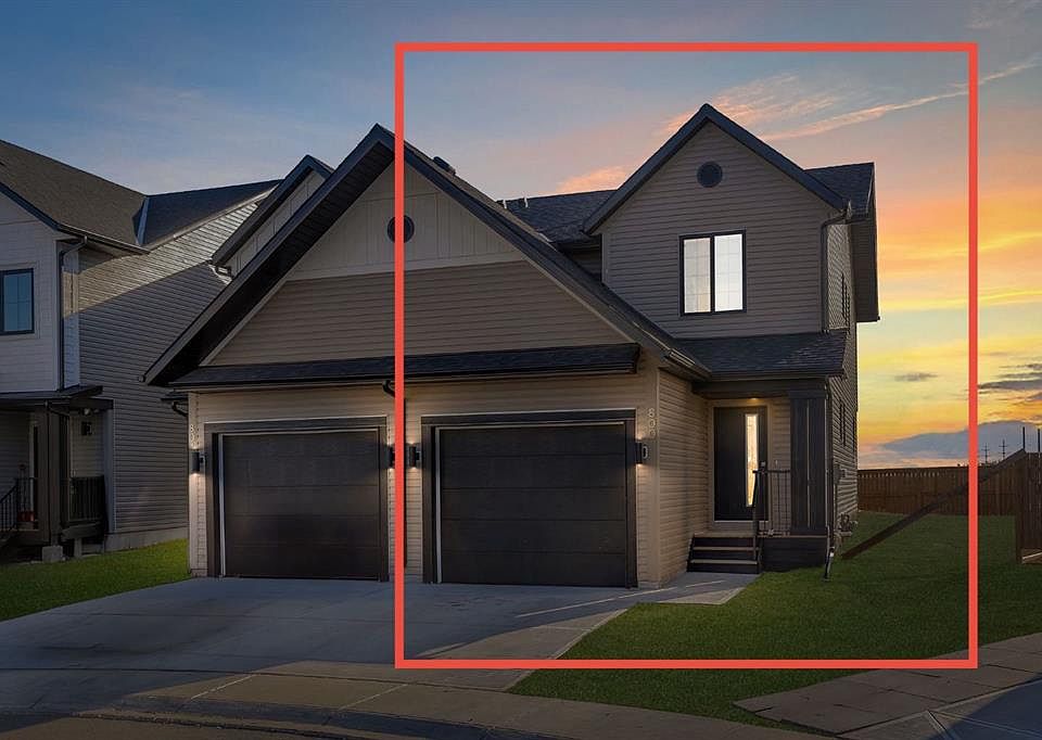 3 BEDROOMS | 2.5 BATHROOMS | FRONT ATTACHED GARAGE | NEWLY PAINTED | BIG PIE LOT | Welcome to this stunning newer 3-bedroom, 2.5-bath semi-detached home nestled on a massive pie-shaped lot in the desirable community of South Point, Airdrie. Perfectly located on a quiet, family-friendly street, this property combines modern comfort, functional design, and a spacious outdoor lifestyle — an ideal choice for young and growing families. Step inside to discover a bright, open-concept layout designed for modern living. The main floor greets you with abundant natural light streaming through large windows on multiple sides, highlighting the warm tones and contemporary finishes throughout. The chef-inspired kitchen features stainless steel appliances, quartz countertops, a built-in microwave, elegant cabinetry, and a large island — making it the heart of the home for family gatherings or entertaining friends. The open layout seamlessly connects the kitchen, dining area, and living room, creating a perfect flow for everyday living. Upstairs, retreat to the spacious primary suite complete with a luxurious 4-piece ensuite showcasing dual sinks, a walk-in shower, and modern fixtures. Two additional bedrooms offer ample space for kids, guests, or a home office, complemented by a full bath and convenient laundry area. The unfinished basement, with its large window, presents endless possibilities — whether you envision a recreation room, gym, or future legal suite(subject to city's approval). Outside, enjoy the large concrete patio and expansive backyard — a rare find on such a big lot — perfect for summer barbecues, gardening, or simply relaxing under the open sky. The front-attached garage adds convenience, while the meticulously maintained exterior reflects true pride of ownership. Located in the vibrant South Point community, you’ll enjoy access to parks, playgrounds, tennis and basketball courts, BBQ areas, and an off-leash dog park. Families will appreciate having a brand-new elementary school within walking distance, while commuters benefit from easy access to QEII Highway, Main Street, and the South Transit Terminal. A perfect blend of comfort, style, and location — this home offers everything you’ve been looking for. Don’t miss your chance to make it yours!