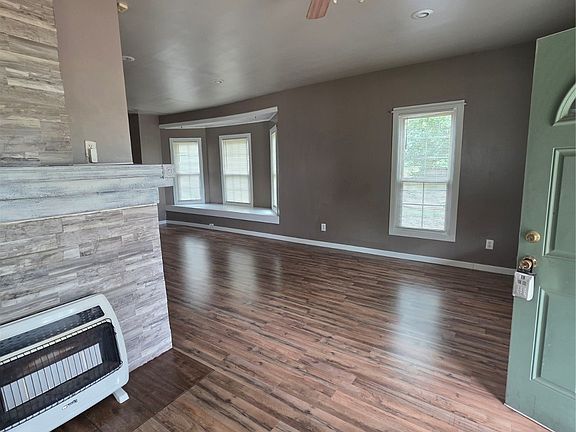 This home is a charming 3-bedroom, 1.5-bath, two-story on a corner lot that's eligible for a USDA or VA loan with 0 down payment! This property features updated finishes, including new vinyl windows, fresh interior paint, and new flooring downstairs. Enjoy the peace of mind that comes with a new main sewer line and PEX plumbing throughout. The home also boasts vinyl siding and a new chain-link fence—perfect for your fur babies and plenty of outdoor space to entertain. Buyer to verify schools. Home is also available for rent. Alarm system owned, not monitored.