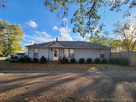 Adorable Home on the corner!! This charming 1152 SF (per CH), 3 Bedroom, 2 full bath home was built in 2007! The home has a nice semi Open Floor plan with a lovely Woodburning fireplace in the living room and a wood mantel. The Dining Room will accommodate a dining set and is adjacent to the kitchen that has wood cabinets. The door from the dining room leads to the side yard and a covered porch. The Primary Bedroom is a generous room with great natural light, a large walk-in Closet and an ensuite bathroom with storage! This charming home is centrally located in Tahlequah and sits on a corner lot with privacy fencing and a storage shed. This home will go FHA, RD, VA, MAP & Conventional.