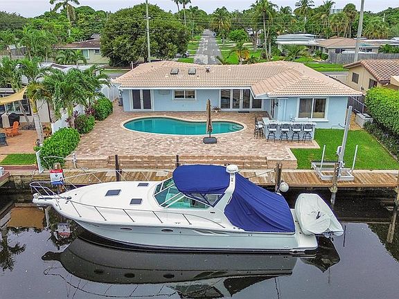 Updated and move in ready ocean-access waterfront home with east-facing backyard, saltwater pool, hurricane impact windows/doors, impact skylights, and a 1,500-lb jet ski lift. Features include natural gas water heater, range/oven, outdoor grill, and summer kitchen. Barrel tile roof, tile throughout with laminate in bedrooms, and split floor plan. Custom closets, built-ins and plenty of storage Oversized 1-car garage with Garage Trac diamond flooring. Saltwater pool with child fencing. PVC pipes with one sleeved line. Wine refrigerator included. Perfect backyard for entertaining. New seawall footer (2022). Great Pompano Beach location!