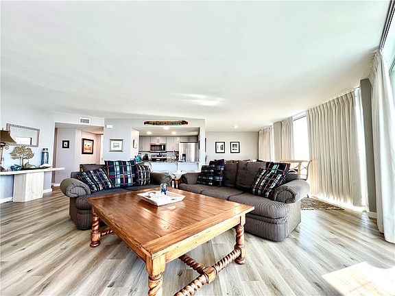 Enjoy your morning coffee or evening sunsets from your large private wraparound balcony of this corner unit while overlooking the pristine shoreline. The open floor plan provides a comfortable living area, full kitchen, and dining space, all designed for both relaxation and entertaining.