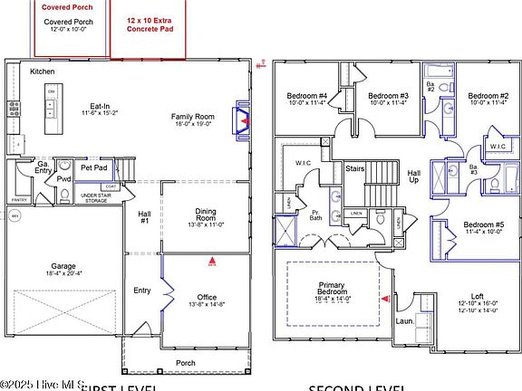The Turner is a two-story open plan home with five bedrooms and three and a half baths. There is a home office with French doors off of the entry. The great room, with fireplace, has access to the formal dining room, kitchen and eat-in area with pet pad. The kitchen features a large island and walk-in pantry off of the garage entrance. There is also ample under stair storage. The upstairs primary bedroom features a large walk-in closet, dual linen closets and a five-foot walk-in tile shower. Two of the secondary bedrooms share a full bathroom. The other two secondary bedrooms share a jack and jill bathroom. Loft and laundry room are also conveniently located upstairs. This home boasts a covered porch as well as an uncovered patio and backs up to open space with a retention pond view.