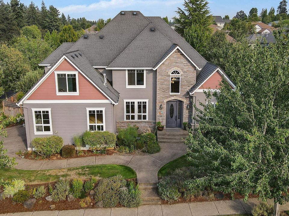 Grand 18ft ceilings and soaring windows fill this home with natural light! Updated in 2024 and immaculately maintained, the main level features multiple dedicated spaces with gas fireplaces in both living and dining areas. The main-level garden-view primary suite offers vaulted ceilings, double walk-in closets, and a spa-inspired bath with marble hex shower accents and jetted tub. The kitchen is complete with a new Café induction cooktop, grey-veined quartz, plus all appliances included. Upstairs provides a second primary en-suite, plus a third and fourth bedroom with jack-and-jill bath and bonus space. Outdoors, the yard is a showpiece : landscaped to perfection with a secret-garden feel, a charming shed, raised beds, fruit trees, and berries, plus a new pergola and patio with valley views. Sidewalks lead through the beautiful neighborhood to the nearby park, maintained by the HOA. The HOA is well established ensuring maintenance of the community park and ponds and a pristine neighborhood.