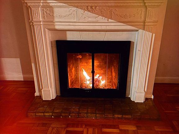 Working fireplacePeninsula breakfast barOpen layoutLarge windowsParquet floorsModern stainless-steel appliancesRefinished hardwood floors