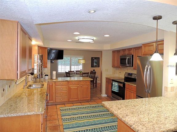 Spring Valley Farms custom built 5/3.5 bath pool home sits directly across from Spring Lake for your boating and water skiing enjoyment. This 2 story home offers large rooms for social gatherings. A spacious remodeled kitchen features new stainless appliances installed in 2017..with generous amount of kitchen cabinets and granite counter tops. The large pool can be viewed from the kitchen area. There are several French doors for access to the outside. The expansive master bedroom offers its own office nook area. The master bath offers dual sinks and granite counter tops, a large walk in shower plus a jacuzzi tub for relaxing . There is a bedroom downstairs that can be used as an office or bedroom. The pool bathroom is a full bathroom complete with shower. The extra long driveway also offers an RV pad with electric. The garage is oversized. The back yard has a workshop with electric. Relax in your private screened in setting and enjoy the pool or landscaped sitting area with fire-pit. Spring Valley farms is a sought after community offering a ski like with HOA membership, the boat dock, pavilion, playground, tennis, volley ball, practice green, basketball court and so much moreplus easy access to major highways for an easy commute to Orlando, Winter Park and Maitland