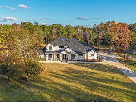 This stunning 4,650 sq ft home sits on a 1-acre lot in Stone Chimney Cove, offering beautiful views of Stone Chimney Creek leading into Lake Palestine. The community features underground utilities, a private boat ramp and pier, a protected shoreline, and quick access to deep water. Located in the desirable Bullard School District, it’s also just fifteen minutes from groceries and essentials in the Bullard Hallmark Town area. Designed for luxury living, the home includes high-end kitchen appliances, Italian marble counters, and two refrigerator spaces. Enjoy covered front and back porches with tongue-and-groove ceilings, vaulted ceilings throughout, multiple living areas, and spacious bedrooms and bathrooms. The primary suite features an oversized luxury bathroom with double rain-shower heads. Recessed lighting and a hall-entry coffee bar add comfort and convenience. The oversized three-car garage offers 10-ft and 18-ft entrances, insulated doors, extended depth, and custom cabinetry. The expansive outdoor entertaining space includes an outdoor kitchen, powder room, and a large stone-hearth gas fireplace. Energy efficiency is enhanced by spray-foam insulation, two HVAC units, and tankless water heaters. Upstairs provides two attic access points with ample decked storage. The yard is nearly fully covered with upgraded St. Augustine grass and attractive landscaping, complemented by a picturesque front porch and beautifully finished steps. Built with exceptional attention to detail, this home is truly a must-see. The builder offers a 1-2-10 warranty and $10,000 in closing concessions for a rate buy-down or buyer’s choice.