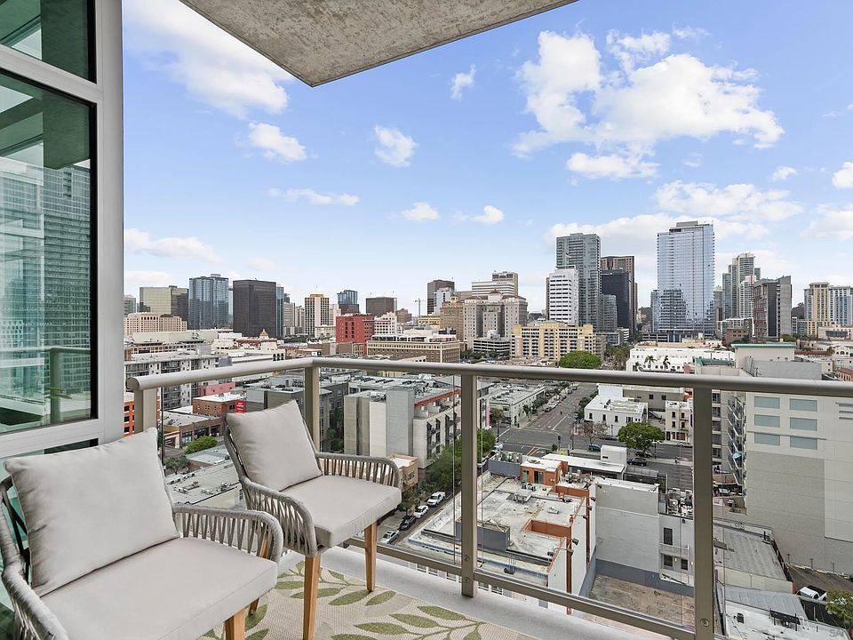 PET FRIENDLY & VA Approved! - Downtown living at its finest in this upgraded condo in one of the best buildings in the Gaslamp, The Mark! Experience life on the 15th floor with an expansive view of the city from your private, spacious balcony. The upgraded, open kitchen overlooks the wide open living space with floor to ceiling windows creating tons of natural light. A new in-unit, full sized washer dryer is included as are all upgraded appliances. Plentiful storage found throughout including a huge walk-in closet as well as a private, locked storage space in the parking garage. New plank flooring meets stylish cement accents for a clean, inspired look. Multiple elevators allow for quick access. Tons of amenities to be found - a gym, on-site guard, and a beautiful, outside, gated area with a pool, spa, green-space and nearly completed common area upgrade. And you get TWO PARKING PACES! You must hurry and see this fabulous unit!