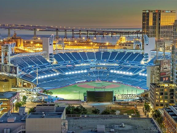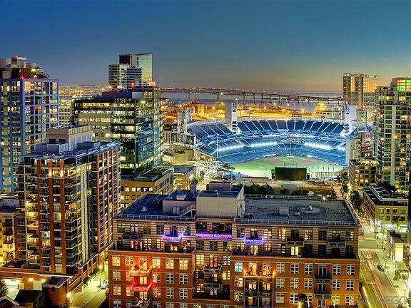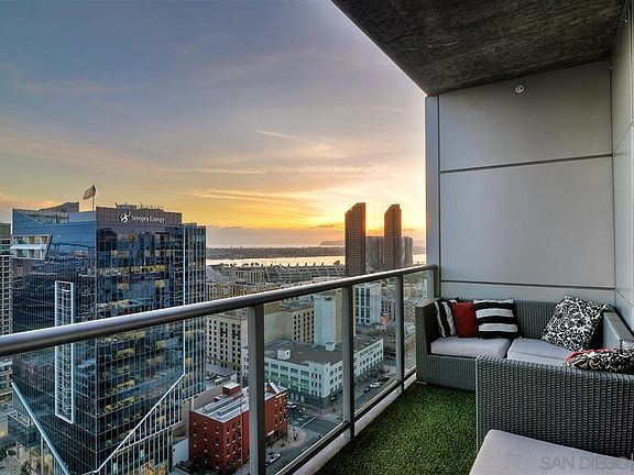Take a look at these views! Sitting high up on the 23rd floor of The Mark, you have views of Petco Park, Coronado, Mexico, the mountains and the ocean. The kitchen and living room have an open layout the split bedrooms do not share walls, each with a large walk-in closet. Residence 2307 has 10' high ceilings and floor-to-ceiling windows. The floors have been upgraded, as well as all the window covering, including power shades in the living room. Underground parking spot. Walk through video available upon request.
