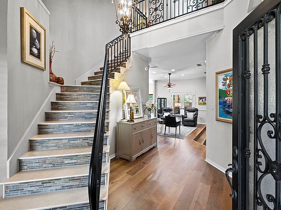Welcome to 800 Trenton Court, an elegant, beautifully updated home in the gated Towne Lake Village community. Enjoy peaceful living with neighborhood amenities that include a clubhouse, sparkling pool, playground, and monthly HOA dues that cover lawn care for a truly low-maintenance lifestyle. This 3 bedroom, 3 bath home offers 3,170 sq. ft. of thoughtfully designed space with 10' ceilings throughout and a dramatic 20' ceiling in the living area that fills the home with natural light. Inside, the large primary suite on the main level features brand-new custom cabinetry, a spacious walk-in shower with rain head and dual shower heads, and separate his-and-hers closets. A second downstairs bedroom makes the perfect guest room or home office, positioned conveniently near a full guest bath. The heart of the home is the open-concept kitchen, sitting room, and den, complete with granite countertops, a large island with new Wolf electric cooktop, touch-activated faucet, ice machine, trash compactor, and new dishwasher. A walk-in pantry and oversized utility room add even more function. You’ll also love the custom-designed iron front door, stair rails, and landing, as well as the newly updated wood-burning fireplace that anchors the main living area with warmth and style. Upstairs, additional living space and a full bath offer flexibility for guests, hobbies, or a media room. Other notable features include: • Custom shutters & motorized kitchen shades • Two new interior AC units • Double-car garage with shelving • Two hot water heaters • Sprinkler system