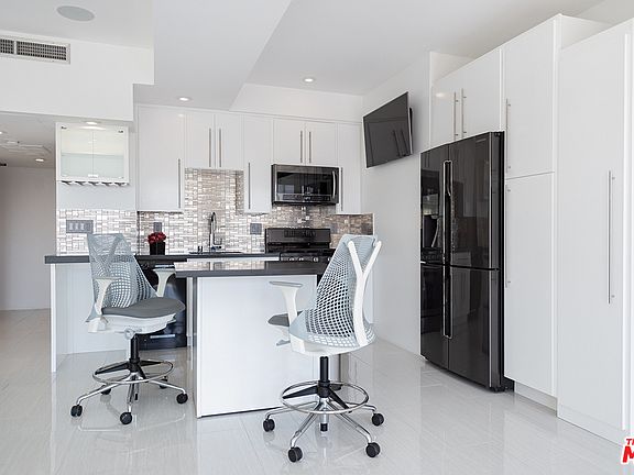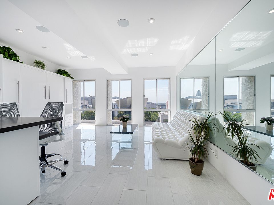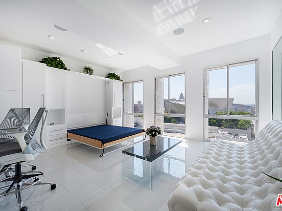 Extensively remodeled, this studio features luxurious upgrades including a modern kitchen w/ custom cabinetry, full size Samsung 5-burner gas stove, dual oven, large refrigerator, microwave, Bosch compact dishwasher, wine bar, quartz counter tops, steel metropolis tile backsplash and a floating island. Italian tile flooring throughout, Denon audio system powering 6 built-in Klipsch ceiling speakers, 42" Samsung smart TV, sound proofing installed between thick drywall, insulated ceiling and floors, mirrored wall, custom bath w/ frameless shower, vanity and efficient storage and murphy bed complete the comforts of home. A wall of windows frames forever views of iconic architectural marvels like the Walt Disney Concert Hall and The Broad Museum. Bunker Hill Towers offers a community pool, tennis court, gym, clubhouse, market & dry cleaning services. ***HOA includes gas, electric, water, basic cable & internet*** Unit 1304 comes w/ 1 reserved parking space and a storage unit (approx 4x4x8)