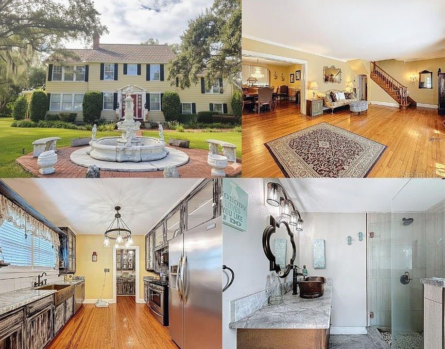 One or more photo(s) has been virtually staged. A RARE HISTORIC MASTERPIECE ESTATE ARCHITECTURALLY DESIGNED, BUILT, AND RESIDED BY CYPRESS GARDENS FOUNDER DICK POPE. 800 West Lake Elbert Drive offers a rare opportunity to own a truly iconic piece of Central Florida’s heritage. Overflowing with timeless character while for today’s living comfort it has been meticulously blended with modern amenities. From the appointed grand imported Italian outdoor fountain centering the front of the estate to the stunning detailed craftsmanship throughout its charming interior, you’ll feel like you’ve stepped into a time capsule. The original details abound — including hardwood floors, handcrafted wood doors, intricate moldings, built-ins, and vintage tile — all beautifully preserved to honor the home's architectural roots. The formal living room welcomes you with its crafted fireplace, pocket doors, and appointed staircase leading the upper level living quarters. The spacious formal dining room featuring classic built-ins. Adjacent is a thoughtfully updated kitchen where history charm blends with contemporary convenience: custom wood cabinetry, stone countertops, stainless steel appliances, a copper farmhouse sink, and a natural gas stove. The adjoining butler’s pantry includes a second staircase to the upper level, adding both function and flair. The formal dining room expands through french doors into an expansive den that boasts the original mosaic tile floor offering a flexible space for entertaining or relaxing. The outdoor porch is screened for relaxing while capturing nature and the Florida breeze. Among many other features this estate includes a bonus room with a full bathroom also draped in original vintage tile and vanity. The upper level of the estate features a secondary master suite with walk-in closet and private ensuite with beautifully preserved original tile and lighting fixtures. Two additional guest bedrooms share a full bath and the indoor laundry room adds convenience. The expansive primary suite features a private sitting room with a wood-burning fireplace, a walk-in closet, and an en-suite. Original built-ins in the bedroom blend seamlessly with the refined updates, creating a space that is both restful and regal. This historic gem also has the potential to be officially registered as a historic landmark, making it not just an estate, but a legacy. A bonus is an existing assumable FHA mortgage with only 3.5% interest rate. This is truly a rare opportunity for the buyer that loves historic masterpieces. Don’t delay..... Make your appointment today.