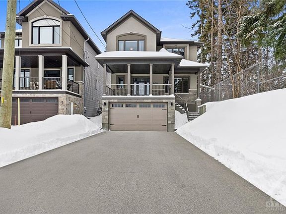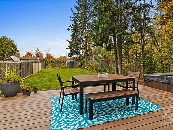 Custom Designed in 2015 by Doyle Homes, this original owned 4+1bed/4 bath home offers a tranquil retreat w/ no rear neighbors & no neighbours on west side w/ material trees owned by the City of Ottawa, South exposed lot, fully fenced & landscaped byard w/ deck, storage shed & hot tub. Extra deep covered porch welcomes you. Some interior features incl. tile & white Oak hwd flrs, automatic lights, remote blinds, Custom Millwork, Quartz counters, in-ceiling speakers, central vac, Ecobee Smart Thermostat & more! Main lvl foyer w/ tile flooring opens up into niche rm & incl. walk-through front closet, office w/ coffered ceiling, formal din area w/ vistas of trees, kitchen w/ centre island w/overhang, upper/lower cabinets, bev fridge, walk-in pantry + eating area. 2nd lvl incl. Primary that boasts vaulted ceilings & 6pc ensuite w/ spa like fixtures. LL has rc rm w/ 5 deep windows, home theater & fitness area, bedrm & open mudrm w/ loads of & storage. Some images digitally edited. A true GEM!