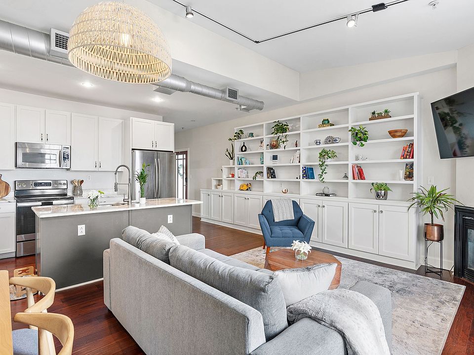 Top-floor corner unit at City View Lofts in the heart of East Nashville's Historic Edgefield neighborhood. This 2-bedroom, 2-bath condo features soaring ceilings, hardwood floors, custom built-ins, and an open layout with natural light throughout. The updated kitchen includes a large island, quartz countertops, and modern finishes. A private balcony offers treetop and skyline views, complemented by a gas fireplace, custom primary closet and generous storage. This small 30-Unit Residential Community offers gated parking with assigned parking spaces, an elevator, lush landscaping and is neatly tucked into an amazing location along the brick lined sidewalks of Historic Edgefield. Unmatched walkability with East Park, Turnip Truck, 5 Points, Nissan Stadium, and downtown just steps away. Now offering a 1-0 Interest Rate Buy-Down with our preferred lender!! Come see this one in person!
