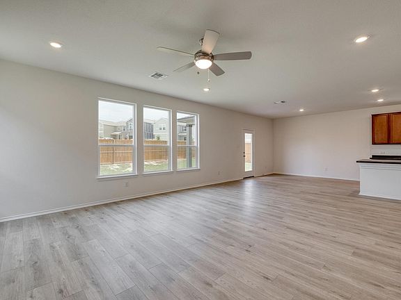This gorgeous, two-story home showcases an open floor plan with stylish luxury vinyl plank flooring and a spacious great room, which is perfect for gatherings. A versatile den provides space for remote work or relaxation. The modern kitchen boasts flat-panel upper cabinets and durable laminate countertops. Upstairs, a cozy loft awaits. The primary bedroom features plush carpeting, a walk-in closet and connecting bath that offers a dual-sink vanity, Silestone® countertops and luxurious walk-in shower with tile surround. Additional highlights include an ecobee3 Lite smart thermostat, timeless Sherwin-Williams® interior paint, Moen® fixtures throughout and ceiling fans at great room and primary bedroom. Relax outdoors on the covered back patio.