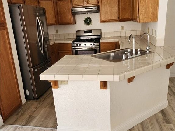 One storyWater softenerLarge backyardCovered patioAll appliancesStainless steel refrigerator