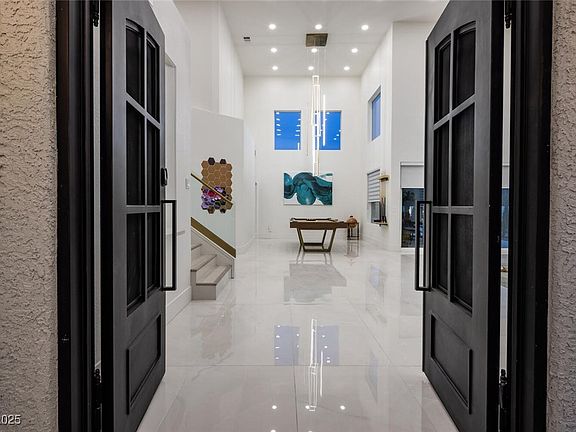 Castle Gate, where luxury & comfort converge. This fully remodeled estate features over $400K in upgrades, blending modern elegance with timeless charm.The grand entry 22-foot ceilings, glass railings, & an open layout designed for entertaining & everyday living. A game lounge with pool & poker table creating the perfect space for gatherings. Downstairs includes a private home theater, gym, brand-new dry sauna, & 2expansive slider doors that open to a beautifully landscaped backyard oasis, ideal for entertaining or relaxing. Upstairs offers renovated bedrooms & spa-inspired bathrooms custom showers, modern flooring, fresh paint, & stylish lighting. upgrades include new garage doors, landscaping, an upstairs AC unit, & brand-new exterior security cameras. Ideally located minutes from Downtown Summerlin, Red Rock Hotel, Boca Park, shopping, dining, parks, & trails, this home offers unparalleled amenities. Furniture & gym equipment are negotiable, making this a move-in-ready opportunity.