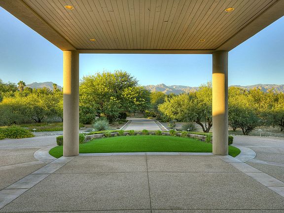* VIEW VIDEO: https://az.movinghometour.com/22009326_Tucson%20MLS * Stunning, private near-northeast side estate on 6.37 gloriously landscaped and vegetated acres backing up to Sabino Creek with gated access to the river walk. Electronically gated front entry and long and winding driveway leads past groves of trees, rose gardens, terraces and meticulously maintained yards to the circular front entry and porte cochere. The glassed foyer of this 7,687 sq. ft., Ron Robinette designed with 4 en suite bedrooms plus den/activity room contemporary leads to the grand formal dining room with Catalina Mtn. views, then to the living room and adjacent kitchen which are ideal for large scale entertaining or intimate family gatherings. LR features coved ceiling, fireplace, wet bar and walls of windows.