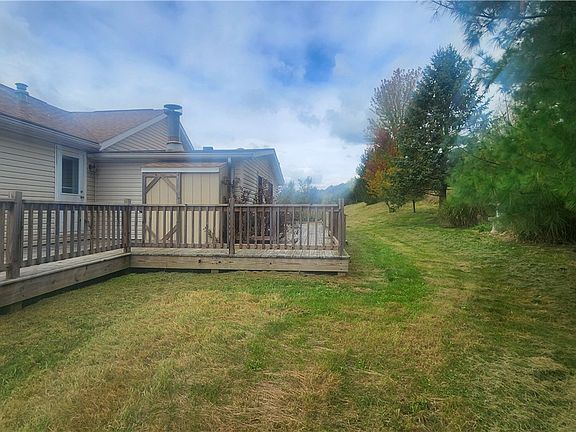 This property sits in the country and has nice views. The main level of the home features a kitchen, master suite with an updated bathroom and walk-in closet, 2 additional bedrooms and full bathroom, laundry area and Florida room. The French doors off the dining room open up to a large, full front deck where you can see endless miles of mother nature’s beauty. The lower level offers a full second kitchen, living area, a third full bathroom and plenty of storage space. Additional highlights include nice outdoor living areas and a large detached garage. Selling as-is.