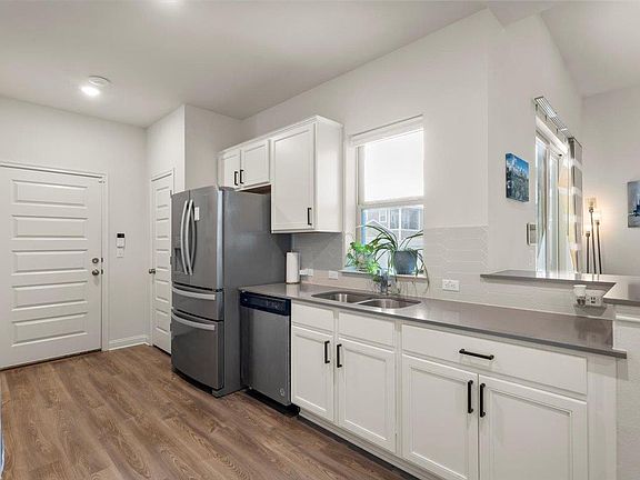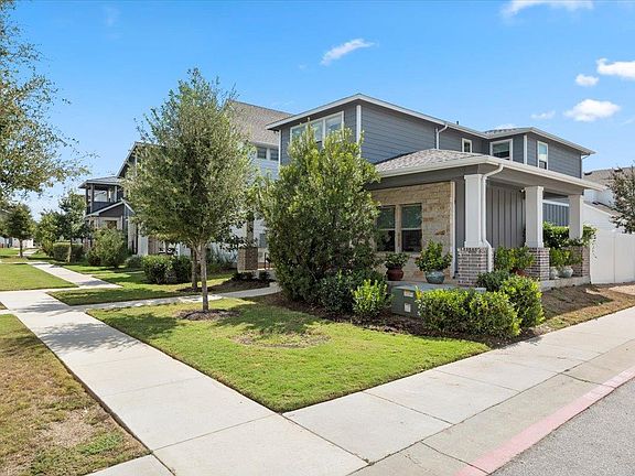 Located on a corner lot in the quiet Union Park East section of Easton Park, this home offers easy walkability to the dog park, The Treehouse foodtruck park, and The Union amenity center, featuring a full gym, two pools, and more. The spacious backyard space is low maintenance with turf and a raised garden bed plus an adorable private back porch. As you pull up to the home, the curb appeal is striking with a large wrap-around front porch facing a beautifully landscaped interior courtyard. Plenty of guest parking is located right outside, plus there's already a 240V plug in the garage for your EV charger. The inside of the home is spacious and bathed in natural light. A huge under-stairs closet located inside the powder bathroom offers tons of extra storage! Upstairs there is a spacious bonus room, plus two bedrooms and two full baths. Looking for comfort and style all in a convenient location within short driving distance to the airport and downtown? Look no further than 8000 Mellencamp! Refrigerator, washer, and dryer included.