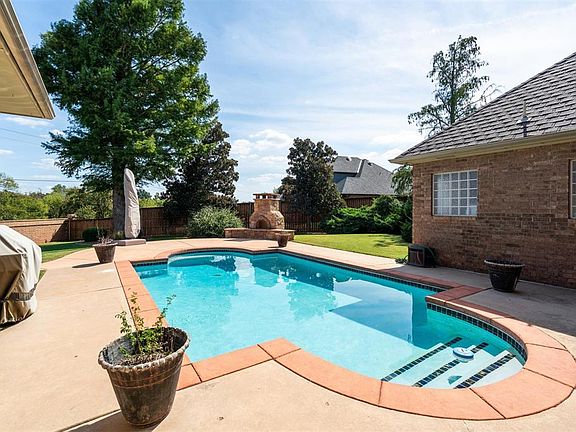 Nestled on a quiet cul-de-sac lot surrounded by mature trees, this stunning home in Cobblestone offers the perfect blend of comfort and luxury. Featuring 4 bedrooms, 3 bathrooms, and multiple living spaces, there’s room for everyone to relax and enjoy. The spacious living room boasts a cozy fireplace and large windows overlooking the backyard, while a second family room or den off the kitchen offers another fireplace and a wet bar—perfect for entertaining. The kitchen provides ample counter space and abundant storage. The primary suite is a true retreat, complete with its own fireplace, private access to the back porch, double vanities, a large bathtub, walk-in glass shower, and an impressive two-story closet. Step outside to your own backyard oasis featuring an in-ground pool, outdoor fireplace, and a beautifully landscaped yard with plenty of space to gather. Located in the desirable Deer Creek School District, this home combines classic charm with modern comfort in one of northwest Oklahoma City’s most sought-after gated communities.