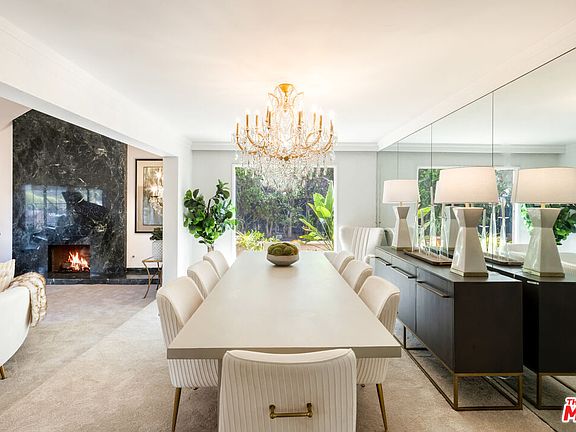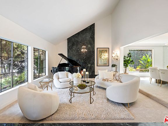 Welcome to 8000 Oceanus, an exquisite residence in the prestigious Mount Olympus enclave with breathtaking cityscape views. Positioned on a coveted corner lot, this nearly 4,000-square-foot home is filled with stunning custom details.Step into a dramatic formal entry featuring soaring cathedral ceilings, elegant chandeliers, and an impressive Onyx stone fireplace stretching from floor to ceiling. Entertain guests in the formal dining room under a dazzling crystal chandelier or ascend the custom wrought-iron staircase to the upper level.The gourmet kitchen is a chef's dream, equipped with top-of-the-line appliances including a Sub-Zero refrigerator, Thermador double oven, 6-burner cooktop with griddle, two warming drawers, granite countertops, and an oversized island with abundant storage and a wine fridge.The luxurious primary suite offers a private sanctuary with a spa-inspired en suite bath, jetted Jacuzzi tub, dual sinks, and two spacious walk-in closets. Step onto your own balcony to enjoy serene views of Downtown L.A. A second staircase off the den leads to a separate private suite, ideal for guests.With a three-car garage plus additional driveway parking, there's room for six vehicles. Outdoors, the meticulously landscaped backyard is perfect for both entertaining and relaxation, offering endless possibilities for gatherings or quiet evenings under the stars. Experience unforgettable sunrises and sunsets while enjoying the best of Mount Olympus living at 8000 Oceanus.