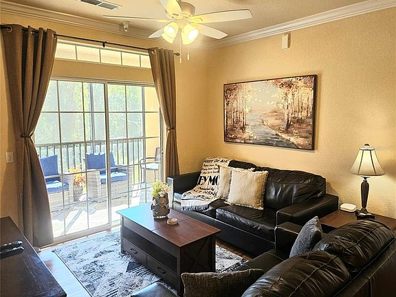 Discover your dream lifestyle in this meticulously maintained and beautifully decorated 2-bedroom, 2-bathroom condominium located in Building 4 of the exclusive Tuscana Resort at ChampionsGate, one of Central Florida’s most desirable gated communities. This stunning, fully furnished unit welcomes you with a bright, open floor plan featuring elegant laminate wood flooring, plush carpeting in the bedrooms, and a brand-new air conditioning system for your comfort. Step onto your private screened balcony and enjoy peaceful wooded views, the perfect spot to relax after a day of Florida sunshine. Every detail has been thoughtfully updated: new furnishings, refreshed paint, and tasteful décor create a pristine, contemporary environment ready for immediate enjoyment. The spacious primary suite offers a private retreat with an en-suite bathroom and a large walk-in closet, while the second bedroom, conveniently separated from the primary, provides comfort and privacy for guests or family members. Completely equipped, furnished, and turnkey, this condo is ideal as an investment property, vacation home, or full-time residence. The zoning allows short-term, mid-term, or long-term rentals—whether you want to rent it daily, monthly, or yearly, the flexibility is yours. The Mediterranean-style Tuscana Resort offers top-tier amenities for residents and guests, including: A resort-style heated pool and spa A modern fitness center A private movie theater 24-hour gated security and lush landscaping Perfectly located in the heart of ChampionsGate, this community is just minutes from Walt Disney World, Universal Studios, SeaWorld, premium shopping centers, fine dining, and championship golf courses. With easy access to major highways, you can reach Orlando International Airport or Florida’s beautiful beaches in under an hour. Whether you’re looking for an income-producing property, a vacation retreat, or a luxurious place to call home, this condo is the total package, a rare blend of elegance, comfort, and convenience. Don’t miss the opportunity to own this exceptional property in one of the most sought-after resort communities in Central Florida. Schedule your private showing today and experience the Tuscana Resort lifestyle!