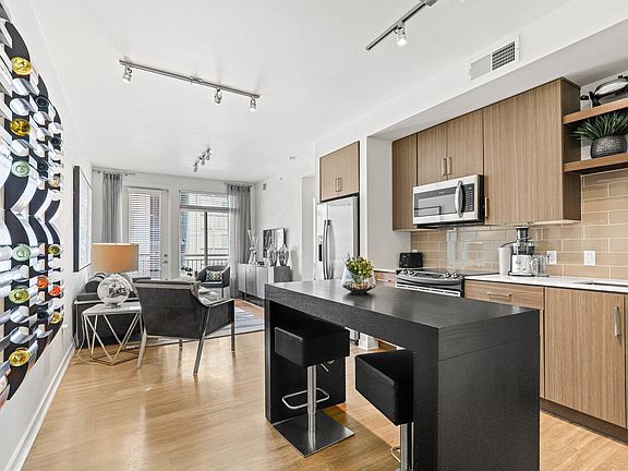 - Exterior features: Barbecue, Bicycle storage, Conference Room, EV Charging Station, Expansive 12-Foot Ceilings*, GE Stainless Steel Kitchen Appliances, Gaming Area with Pool Table & Foosball, Gourmet Kitchens with Backsplashes, Large, Energy-Efficient, Dual-Pane Windows, Quartz Kitchen & Bath Countertops, Split Rent Payments with Flex, TV Lounge, Under-Mounted Stainless Steel Kitchen Sinks, Upgraded Chrome Finishes