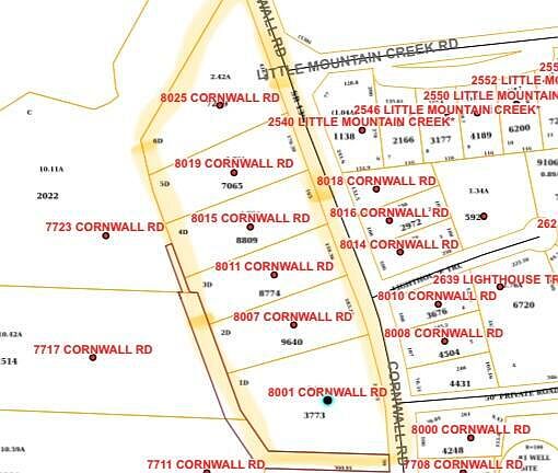 Six residential lots available on Cornwall Road in Oxford, all with valid septic permits. Lot 1-D (8001, 2.75 acres, $50,000) and Lot 2-D (8007, 1.67 acres, $50,000) each feature a dug well (not currently operational). Additional lots include Lot 3-D (8011, 1.59 acres, $40,000), Lot 4-D (8015, 1.74 acres, $40,000), Lot 5-D (8019, 1.72 acres, $40,000), and Lot 6-D (8025, 2.42 acres, $40,000). If purchased separately, restrictive covenants will apply; however, if purchased together, no covenants are required. The contours map outlines easement access and flood zone areas, offering clarity for planning and development.