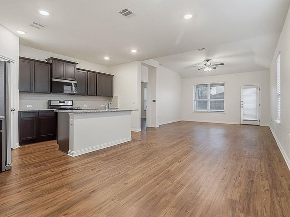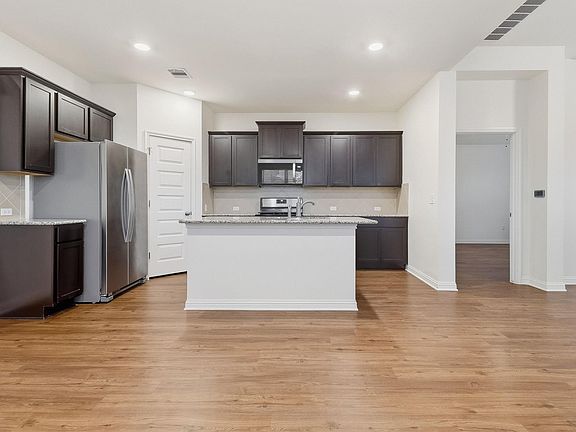 Beautiful two-story home featuring 3–4 bedrooms and 2.5 bathrooms with a 2-car garage and charming front porch. The open floor plan includes a kitchen with island, pantry, and accent lighting. Primary suite offers double vanity, separate tub and shower, and spacious closet. Enjoy the convenience of an upstairs laundry room, a back porch, and a fenced backyard. One or more photos have been virtually staged.