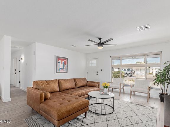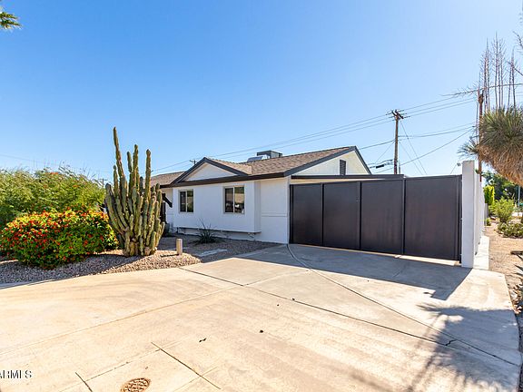 Remodeled single-level 3 bed, 2 bath home located in South Scottsdale! This home offers an open-concept kitchen w/ plenty of storage/counter space, breakfast & coffee bar & brushed black stainless-steel appliances. The elegant French doors lead you to an inviting Arizona room w/ a gorgeous wood ceiling, perfect for relaxing, enjoying a coffee, or hosting gatherings. Primary Bedroom has a spacious closet, & upscale ensuite designer finishes. Private backyard offers a sparkling pool to cool off during the hot summer days, repaved walkways w/ a cozy firepit, & multiple seating areas. Other upgrades include porcelain tile throughout, newly painted interior & exterior, Replaced 3 gates w/ 8ft solid metal security gates & updated laundry. Don't miss the opportunity to see this gem!