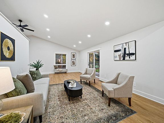 Outside, enjoy multiple spaces to relax or entertain: a new deck off the kitchen, two expansive concrete patios (one at basement level and one off the living room), and scenic views of your own small pond surrounded by mature trees. The oversized two-car garage provides generous storage and workspace.