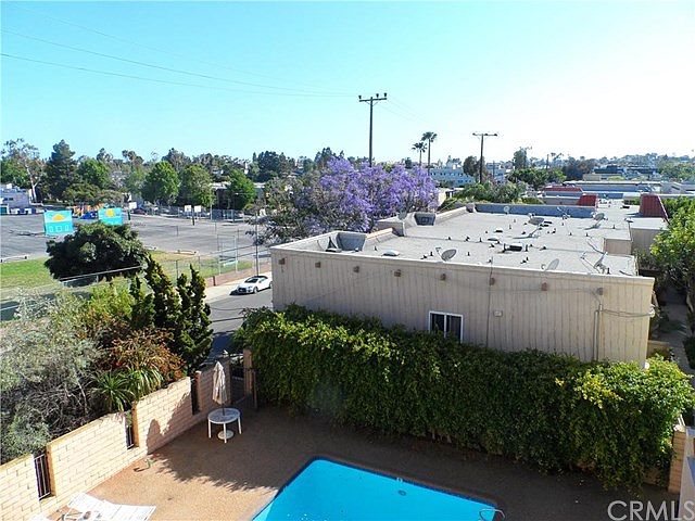 TOP FLOOR LIVING!!! Enjoy the views from this spacious 1 bedroom/1 bath plus den area condo. Large bedroom with walk-in closet. Nice kitchen with large dinning area which opens to a spacious living room with beautiful hardwood floors. Nice balcony with west-facing windows and roof top views. Secured private parking garage. Bright and sunny condo in a smaller complex with secured entrance, pool and recreation room. Close to the beach, shopping and great restaurants. Unit # is #307.