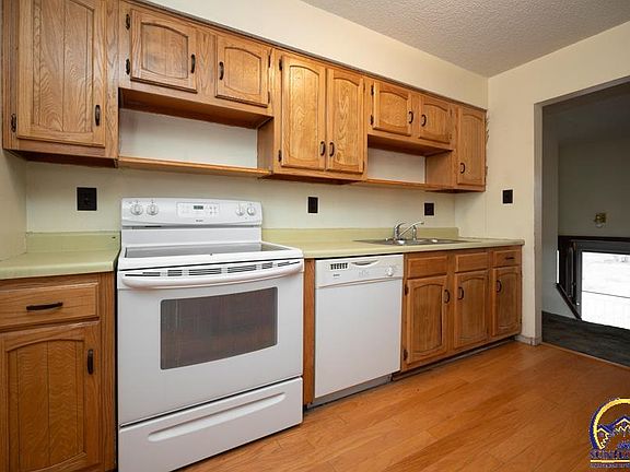 Location is paramount! Here's your opportunity to own in the Mission Hill subdivision just outside the city limit and down the road from the prestigious West Trail Estates and Miller's Glen neighborhoods. This 3 bedroom home is vinyl sided, has dining room and kitchen hardwood floors, replacement windows on the main level and new leaf guard gutters. Set on a half acre lot at the end of the road. Wood privacy fenced backyard. Foundation repairs were professionally completed within the last 10 years, but intended cosmetic work had to be put on the back burner. Homes in this area are selling for far more. Washburn Rural schools. Selling "as-is".