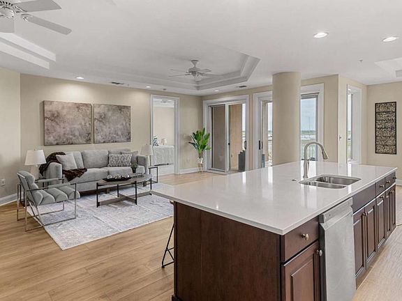 Discover the epitome of luxurious coastal living at Bull River Yacht Club, where elegance and comfort seamlessly blend to create your perfect home. Access this stunning residence via a private elevator that opens directly into the unit, an interior filled with sophisticated details and modern updates. Step out onto the extra-large balcony to enjoy your morning coffee while soaking in the breathtaking sunrise over the tranquil Bull River. The spacious, open concept living area is illuminated by ample natural light. It features exquisite tray ceilings that enhance the sense of grandeur, complemented by stylish pocket doors that lead to a versatile office-ideal for remote work, reading, or quiet reflection. The primary suite is a true retreat, offering two generous walk-in closets, dual sinks, a luxurious, spacious shower, and a separate tub, providing the ultimate in comfort and privacy. As the day winds down, unwind at the rooftop pool where you can enjoy sweeping panoramic views of the surrounding waterways. Evenings are made magical with stunning sunsets, creating a perfect backdrop for gatherings or peaceful moments of relaxation in this beautifully updated, light-filled coastal sanctuary.