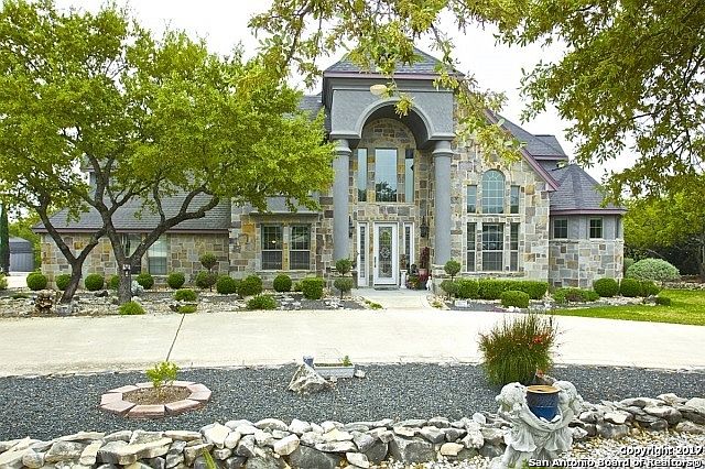Hill Country living near San Antonio & New Braunfels. Owners made this their forever home, and that means 200k of upgrades in place for you. Privacy galore in this 2acre homesite on greenbelt has both a pool & hot tub. Inside, the master suite is its own wing downstairs. Master bath room has Roman shower marble flooring & granite counters. kitchen features imported granite. Entertain or relax between the sauna, tanning bed, exercise room, enclosed sunroom, gameroom, built in bar.