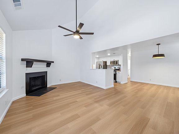 8002 B Dowling Cove. Single story 2 bedroom, 1 bath duplex of about 1000 square feet, off Manchaca Road , south of William Cannon. Quiet location at the end of a cul de sac, on the top of a hill, and shaded by a MASSIVE heritage live oak tree! JUST RENOVATED with full fresh interior paint , new luxury vinyl plank flooring throughout, new stainless steel appliances including French door fridge with bottom freezer, new 5 burner gas stove, stainless steel lined dishwasher and built in microwave. Cabinets refaced. new light fixtures, Building has recent architectural shingle roof and freshly painted exterior! One car carport, and privacy fenced backyard welcomes your pets! NO CARPET Living room has a vaulted ceiling and corner fireplace with gas starter. Kitchen is open to living and dining area. Indoor utility room with washer/ dryer connections, takes gas or electric dryer. We can include washer and dryer for $1850 rent. Gas heat, hot water, stove and dryer hook up. Central air and heat. Convenient to the Little Darlin, Southpark Meadows, Garrison Park, 5 minutes to HEB. Available for move in NOW pets OK with $300 non refundable pet fee per pet. Shown by appointment, professionally managed by Welcome Home Leasing. See our reviews on YELP! Laura Croteau, broker, license # 0370649 Tenant pays all utilities and takes care of yard. Can accept longer than 12 month lease. No smoking