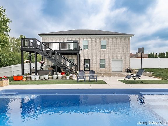Welcome to 8002 Shady View Lane, a stunning residence that epitomizes refined living in one of Jeffersonville's most sought-after neighborhoods. Set on nearly an acre of landscaped grounds, this property offers a harmonious blend of luxury & tranquility. The home's white brick exterior exudes timeless elegance, complemented by a beautiful in-ground pool that serves as the centerpiece of the expansive, fully fenced backyard. The outdoor space is thoughtfully designed with a sleek deck, pristine stamped concrete patio, & low-maintenance turf surrounding one side of the pool, creating an ideal setting for relaxation & entertaining. Utility garage at the rear of the home provides additional storage & functionality. Inside, the residence showcases high-end finishes & an open-concept layout that seamlessly connects the living spaces. The gourmet kitchen is a chef's dream, featuring high-quality quartz countertops, a generous island, top-of-the-line appliances, & custom cabinetry. Great sized bedrooms, & the En Suite features a tub and shower as well. The expansive living room & additional family room offer ample space for gatherings. The property is just minutes from the East End Louisville Bridge, provide swift connectivity to the greater Louisville area. Is proximity to the River Ridge Commerce Center, a thriving hub hosting major employers such as Amazon, Bose, META, Medline, Optum, etc. makes it an ideal location for professionals seeking convenience.