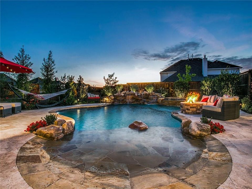 Resort Inspired back yard puts this Megatel deluxe over the top - pool, fire pit, spa, fountain, travertine deck, and oversized covered patio. Inside, every improvement option was chosen when this beauty was build - Alderwood Cabinets, Granite Counters everywhere, wood and travertine flooring, gas cooktop, butler's pantry, media room, game room, office, and highly prized second bedroom downstairs with it's own bath. Rare and convenient extra parking space on the driveway! Be prepared to be delighted.