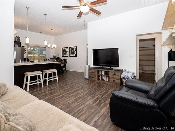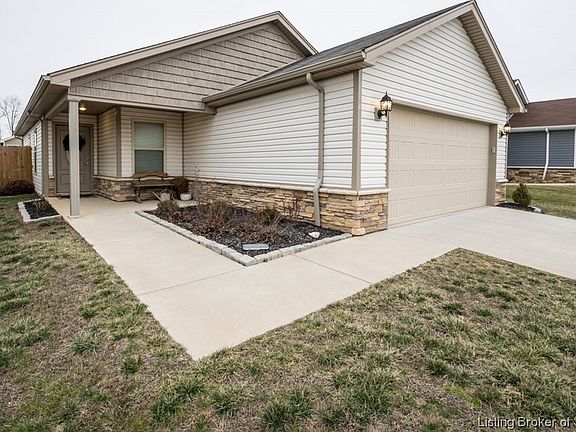 Welcome home! Built in 2021, this open concept 3 bedroom 2 bath home has so much to offer! As soon as you walk in, you'll love the spacious great room that opens to the kitchen which includes a bar and plenty of cabinets. Includes stainless refrigerator, dishwasher, range and microwave. Washer and dryer also stay! Master suite includes private bath with double vanity and walk-in closet. Enjoy the back patio complete with a full privacy fence, and upgraded fresh paint throughout the whole home. Close to everything! The Stacy Springs neighborhood is only 4 miles to I-265 and 5 miles to the new East End bridge! The brand new Jeffersonville Commons Kroger is only 5 miles away, along with all of the new shops and restaurants that Jeffersonville now offers! Call for your private showing before this gem is gone.