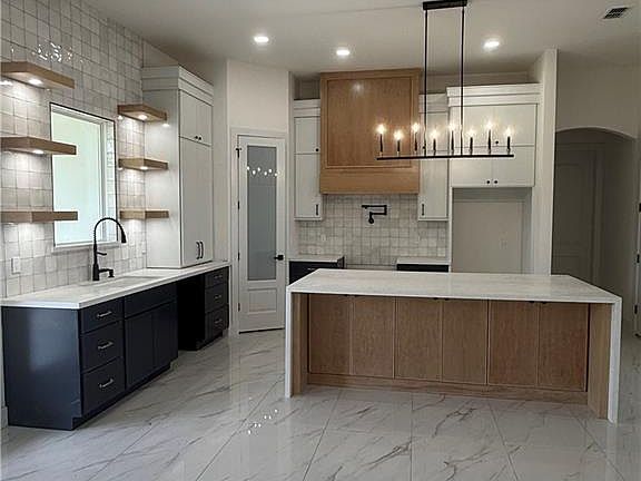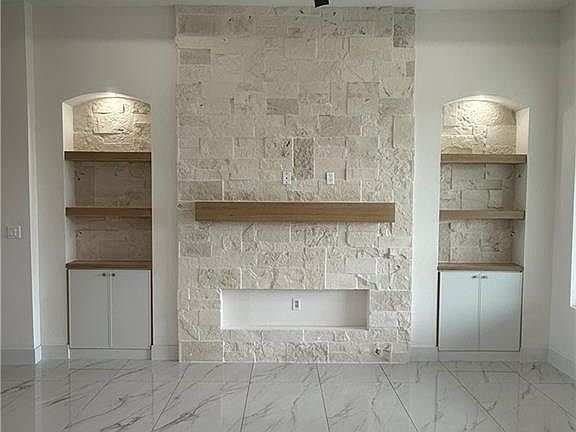 This stunning new home is situated on an expansive 11,145 sq ft cul-de-sac lot and offers 3 bedrooms, 2.5 baths, and 1,883 living sq ft. Step inside to find an open-concept floor plan with decorative high ceilings and a desirable split bedroom layout. The chef’s kitchen features custom white oak cabinetry, a dramatic 8’ waterfall island, built-in pantry cabinets, and a window with backyard views. The spacious living area is enhanced with a built-in entertainment center, stone accents, and an electric fireplace. The primary suite offers a private retreat with a large bedroom, double sink vanity, private commode, spacious walk-in shower, and oversized custom closet. Perfect for entertaining, the backyard includes a covered patio, half bath, and ample yard space. Builder upgrades include: 8 ft doors, White oak island, Tankless water heater, Pre-plumbed for water softener, Spray foam insulation throughout This home is designed for comfort, efficiency, and style!