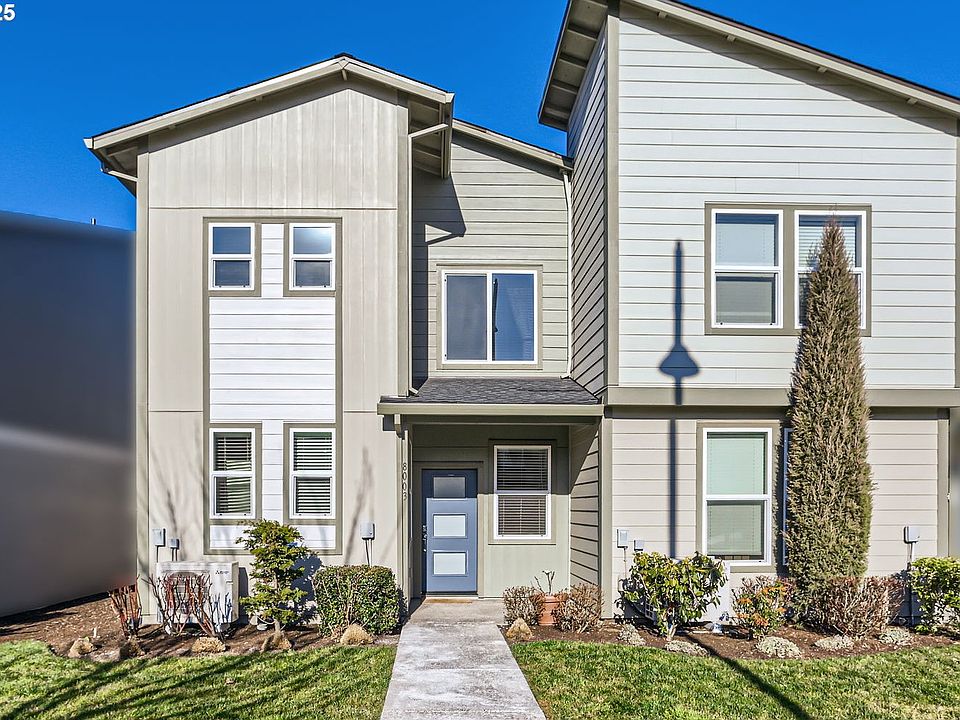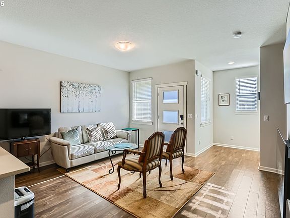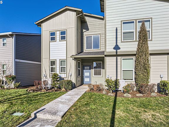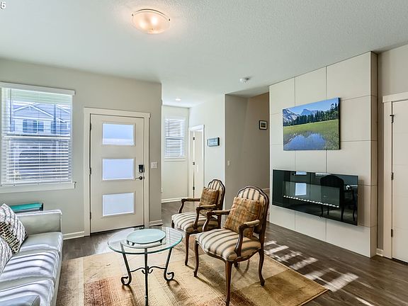 Beautifully Maintained END UNIT Townhome in desirable Butternut Creek Community nestled in the sought-after South Hillsboro, This stunning two-story townhome offers a blend of modern comfort and community charm. Thoughtfully maintained and move-in ready, this home boasts an array of features that make it truly stand out. [Inviting Entry]Enjoy your morning coffee on the sun-soaked, covered front porch while taking in the beautifully landscaped front yard and serene community surroundings. Convenient guest parking is located right in front of your home. [Energy Efficiency]Solar-powered electricity installed in 2022 and vinyl double-paned windows help reduce energy costs, while an electric fireplace ensures a cozy atmosphere year-round. [Elegant Main Floor] The spacious main level features warm, glossy hardwood flooring and an open-concept design perfect for entertaining. Large kitchen w/rich dark brown cabinets is a chef’s dream, with nearly new stainless-steel appliances, shaker-style cabinetry, a large island & pantry for chef's dream, and modern quartz countertops. [Spacious Upper Level] The large versatile loft is ideal for a home office, study, or den. The primary suite features a walk-in closet and a private bath with dual sinks. Two additional bedrooms, a full bathroom, and a convenient laundry room with extra storage complete the upstairs.The attached two-car garage provides plenty of room for parking & storage. [Prime Location]This townhome is perfectly situated neighboring the picturesque farmlands, golf courses, vineyards of Hillsboro,OR. Located across from the master-planned Reed’s Crossing neighborhood in South Hillsboro, you'll enjoy acres of green space, miles of trails, bike paths, dog parks, and community gardens. Exciting amenities like the Market of Choice supermarket, restaurants, and retail shops are coming soon to the area, adding even more convenience to this vibrant community. [Home Energy Score = 10. HES Report at https://rpt.greenbuildingregistry.com/hes/OR10235577]
