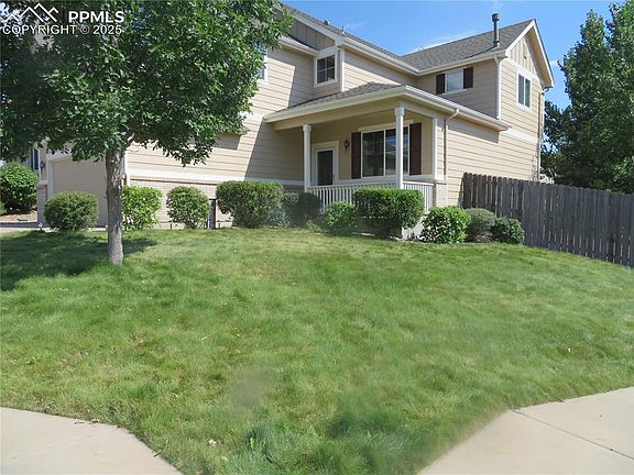 Well Maintained 2 Story Home, situated in a corner Lot.  Close to Military Bases like Peterson Air Force Base, Shriever Air Force Base, Ft. Carson and Air Force Academy. Few mins away from Grocery Shopping, Stores and Restaurants etc. It has 5 Bedrooms, 3 Baths and 2 car garage. Huge kitchen with lots of tall kitchen cabinets for storage, Granite counter top throughout, Island in the kitchen. Great Room on the main level close to the kitchen. Living room with high ceiling very open and inviting. MAIN LEVEL BEDROOM with  Full Bath. Upper Laundry for convenience.